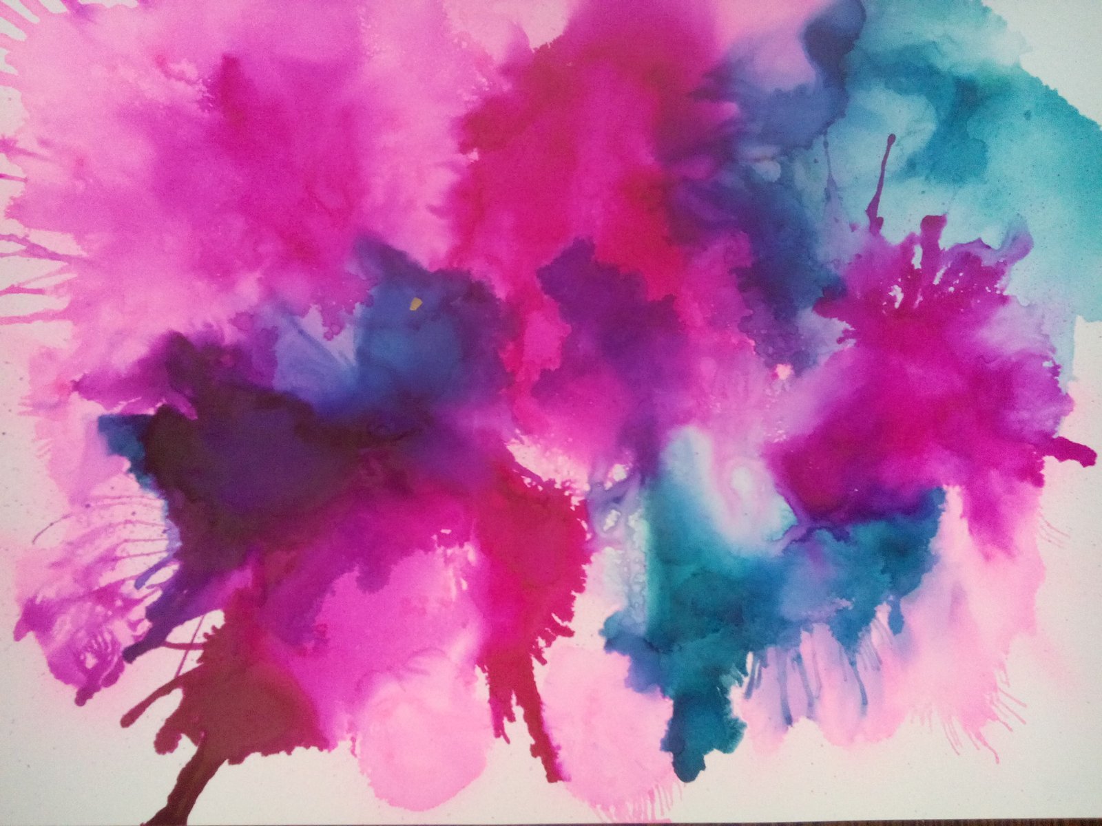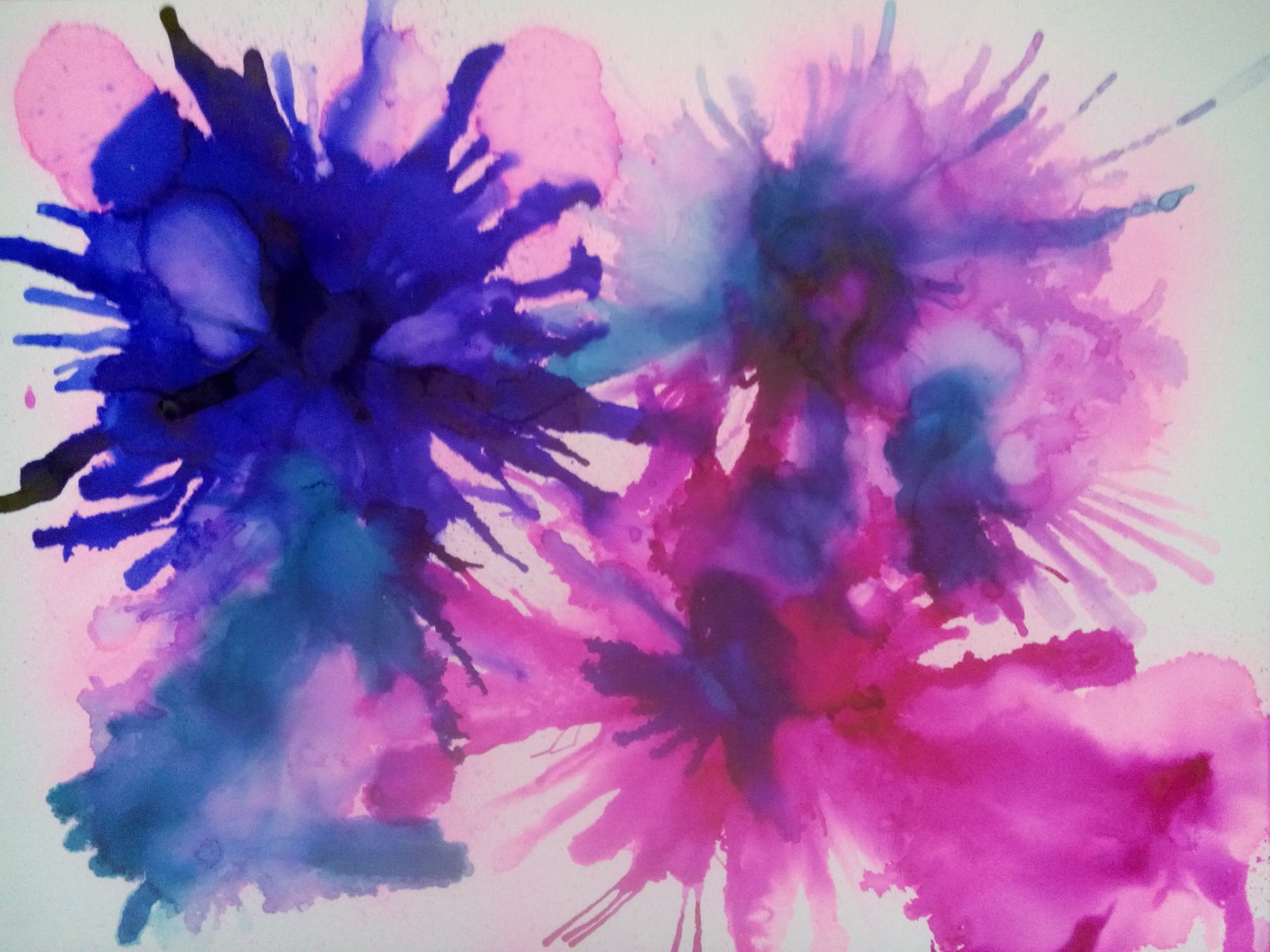 - Blow on the ink using a straw to drive it to the direction that I wanted the paint to go.